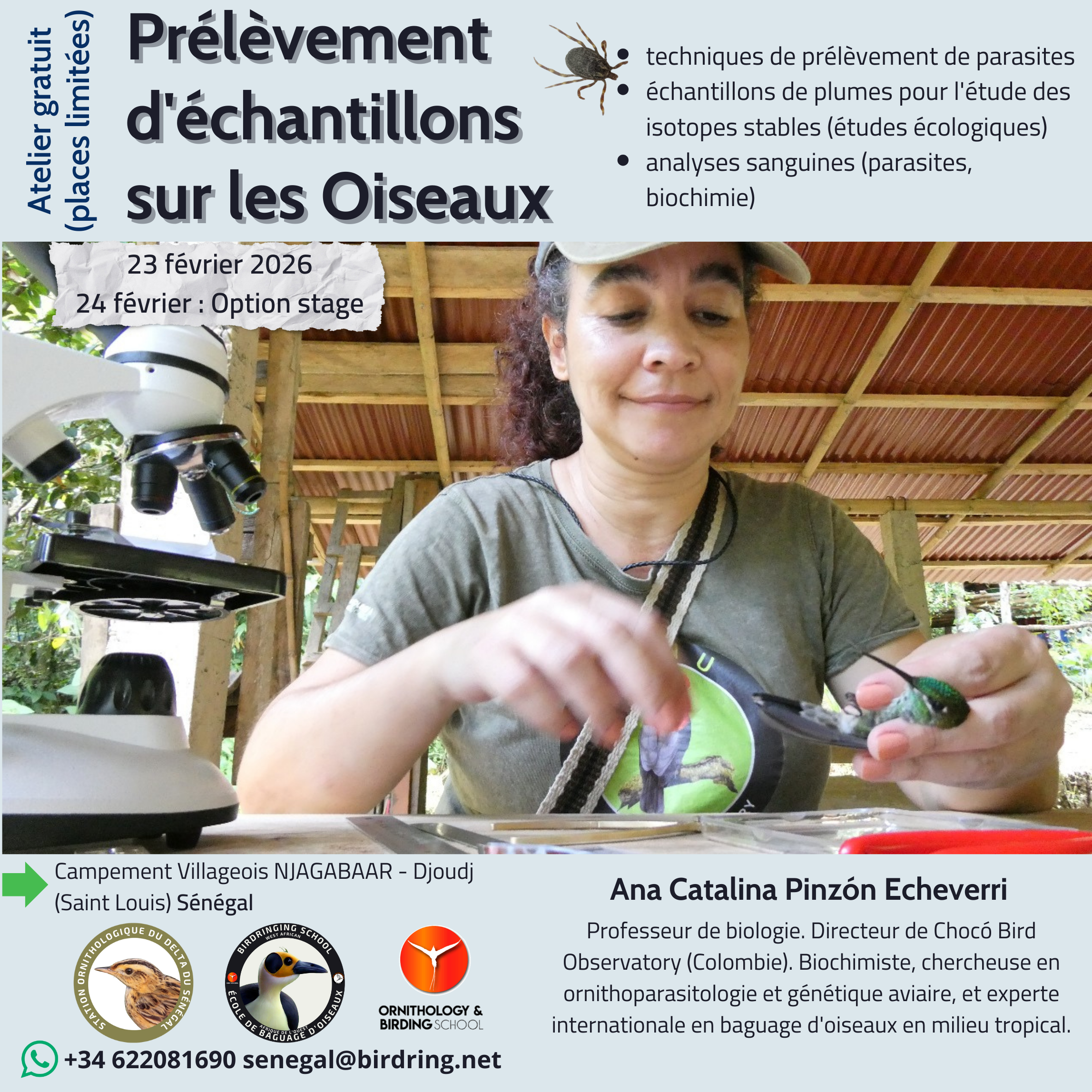 We are from Neotropical ornithological stations situated between Yucatan, Colombia, Ecuador and Peru. Countries, bio-regions and places that boast the greatest bird diversity on the planet. We ring all the year round often in places where investigation of this kind has never before taken place. We set up constant effort sites where our work includes satellite marking, the marking of juvenile flamingoes, terns and waders and other long term projects. Also, making use of our expertise and equipment, we help colleagues in Africa and Asia to set up related projects and activities.
