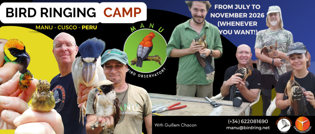 Manu (Cusco, Peru), with all its gradients and ecosystems, is the place in the world with the greatest bird diversity (around 1,049 species). We’ll be ringing from July to November. Come anytime!