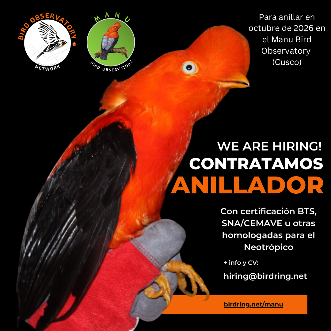 Como nos circunscribimos al cinturón ecuatorial y subtrópicos es fundamental una experiencia contrastada en el anillamiento en esas regiones y con las especies propias de ellas.